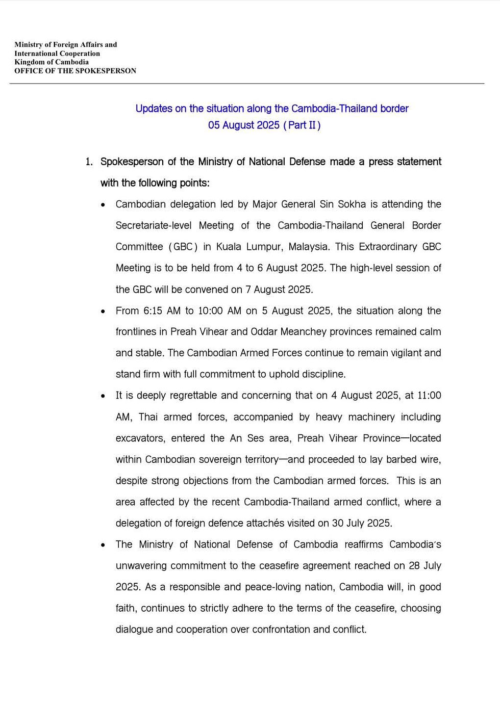 Updates on the situation along the Cambodia-Thailand Border 05 August 2025 (Part II)Cambodia Embassy in BulgariaAug 5, 20251 min readUpdates on the situation along the Cambodia-Thailand Border 05 August 2025 (Part II)